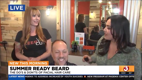 PHOENIX (3TV/CBS5) Summer Ready Beard PHOENIX (3TV/CBS 5) – Regional Manager, Brittney, discusses the ins and outs of summer beard maintenance with Monica from 3TV/CBS5.